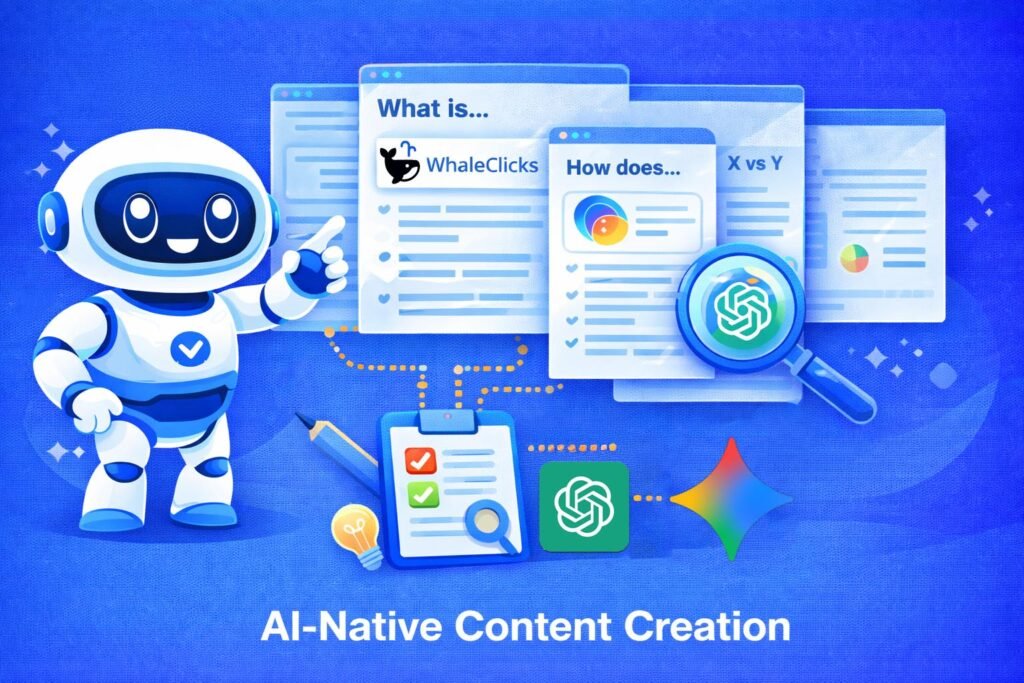 At WhaleClicks, we help brands show up where AI models like ChatGPT and Gemini find their answers. Our AI Search Visibility service (GEO) gets your brand quoted, referenced, and recommended inside AI-generated responses.