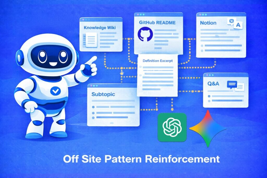 To increase recall and trust, we extend your AI reference language beyond your website by placing short, reusable excerpts of your definitions across neutral, high-trust environments such as knowledge hubs, GitHub READMEs, Notion pages, and relevant community and Q&A platforms.